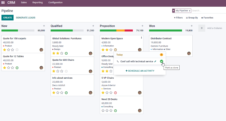 Ejecuta de forma eficaz tu flujo comercial: Envío de email, recordatorios, llamadas, reuniones y cotizaciones. Programación de Actividades y acciones automáticas para que vendas más.