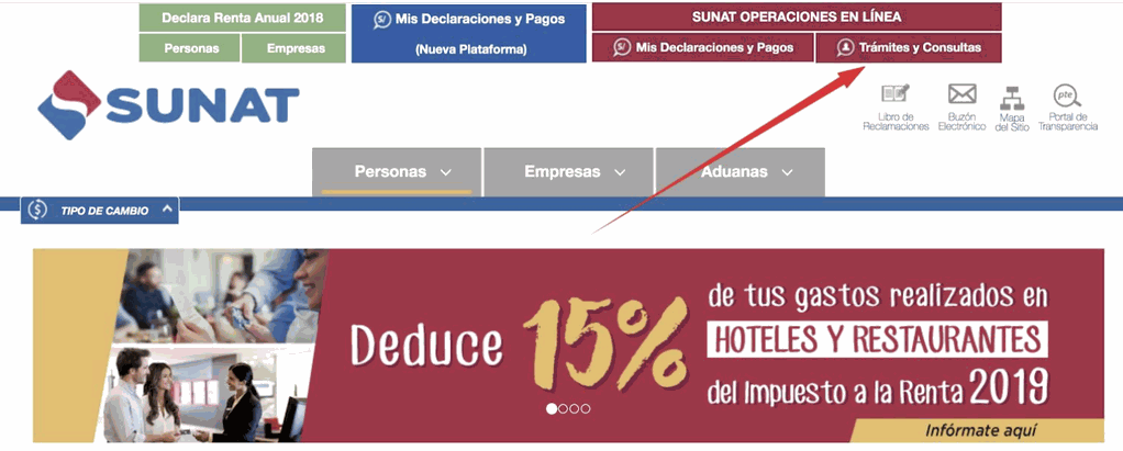 Buscar la opción: Trámites y Consultas (Recuadro COLOR ROJO OSCURO), también puedes seguir este link https://e-menu.sunat.gob.pe/cl-ti-itmenu/MenuInternet.htm