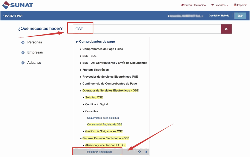 Escriba en el buscador la palabra OSE.