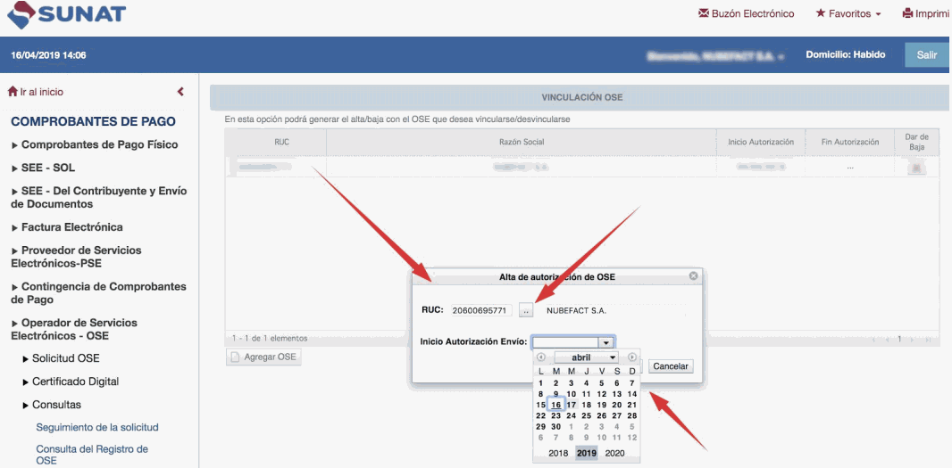 Ingresa este RUC del OSE Nubefact: 20600695771 y haz click en el cuadrado pequeño.
