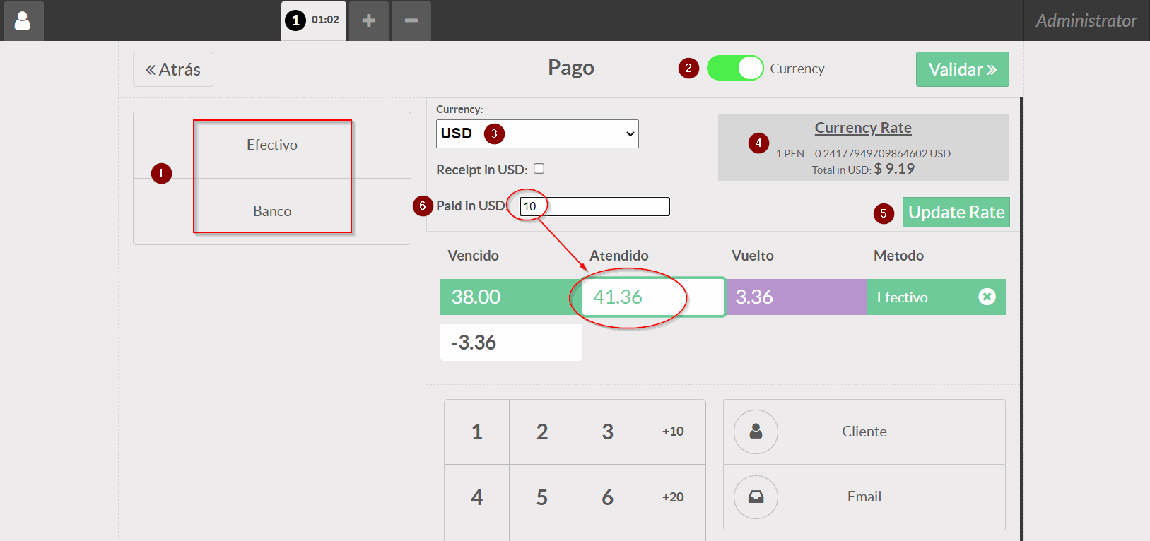 In the configuration of each point of sale you can enable collection in multiple currencies.